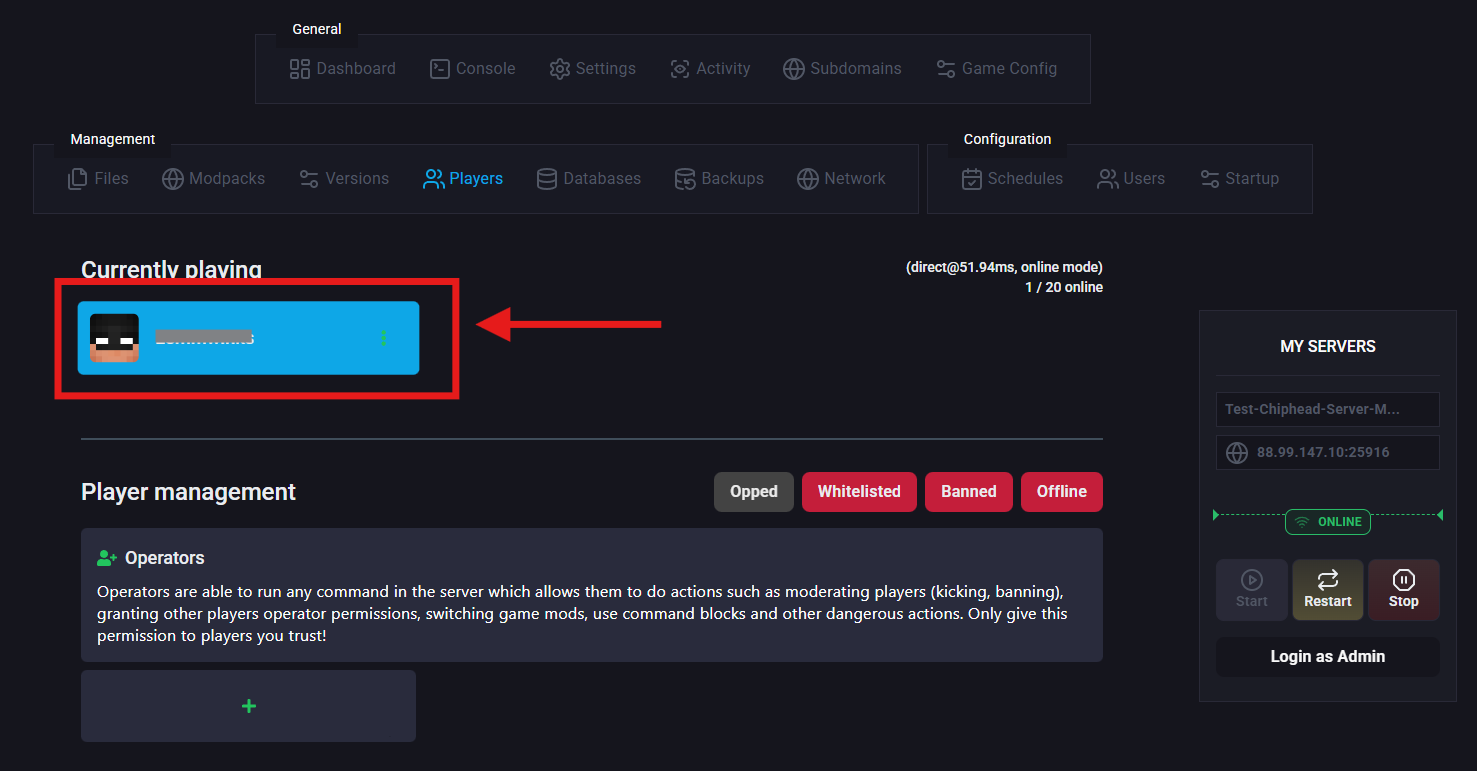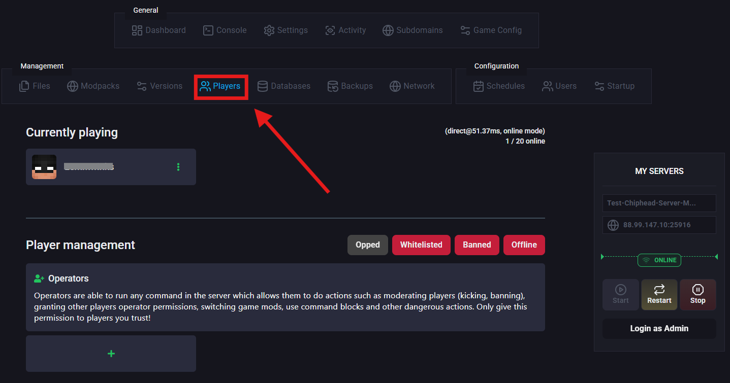 Learn how to grant OP permissions [here].Log in to the ChipHead Panel.