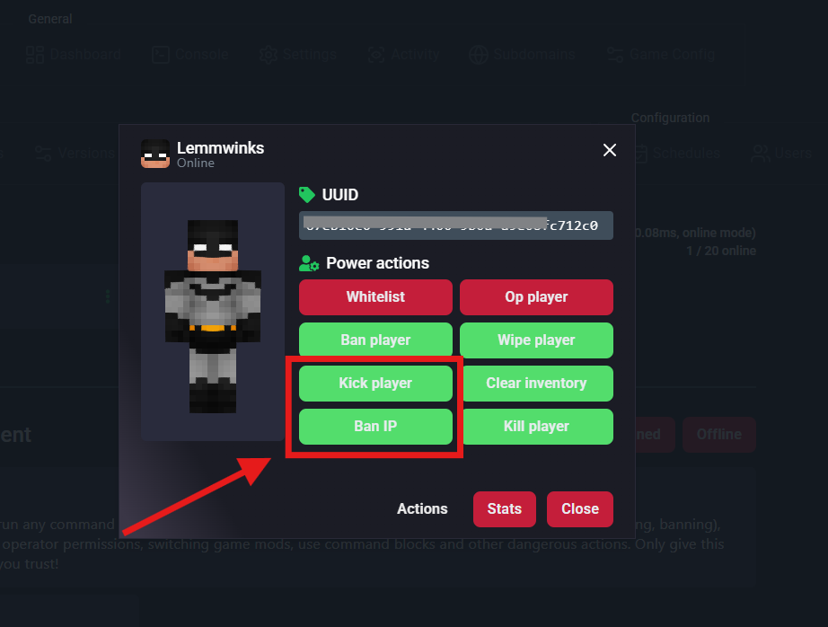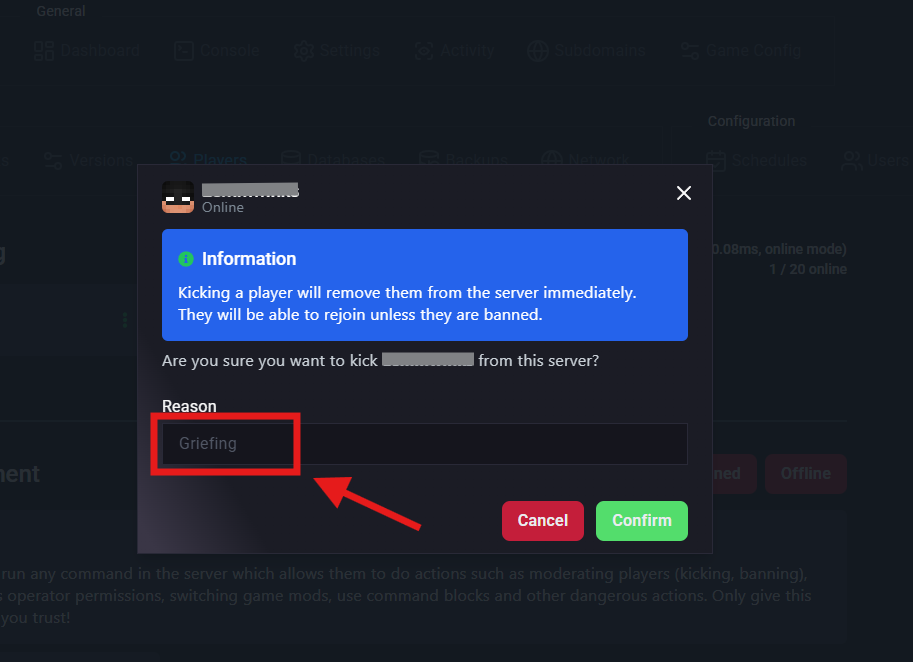 Select "Kick Player" or "Ban Player"