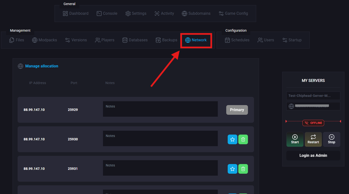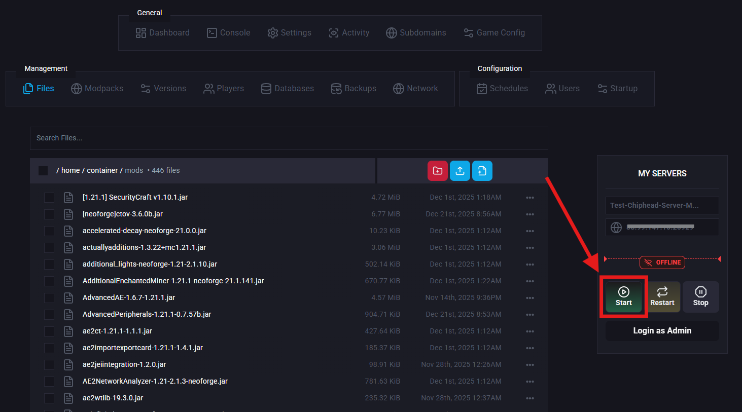 Start the server again.
