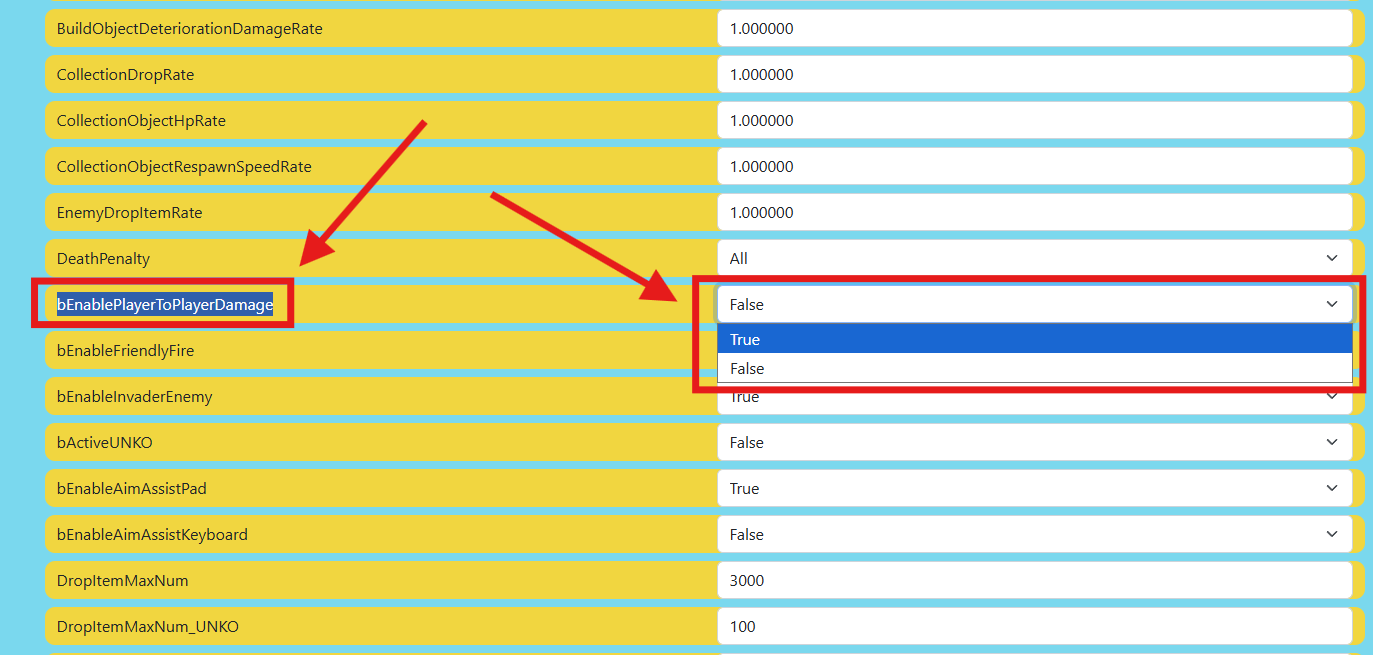 bEnablePlayerToPlayerDamage=True