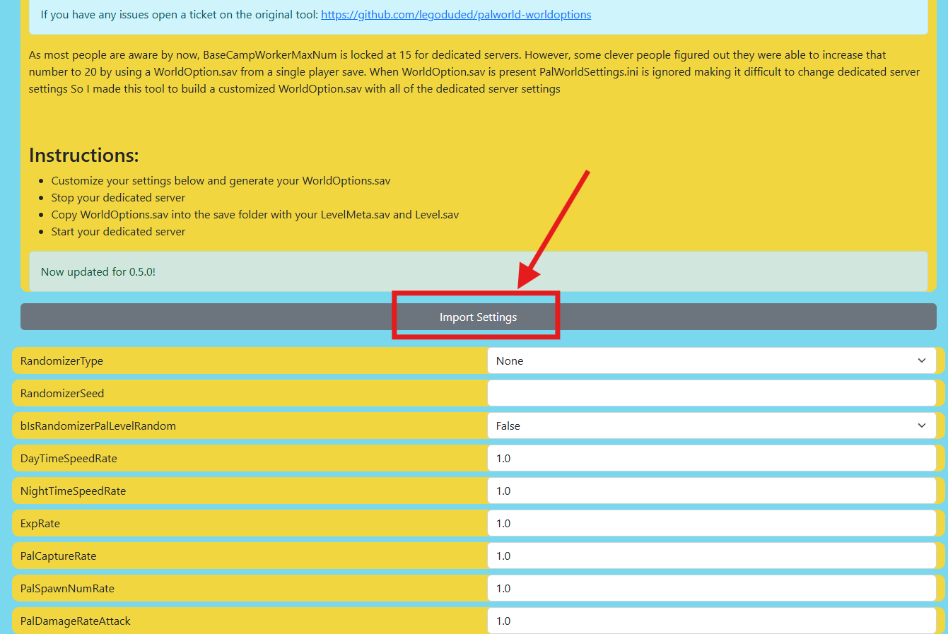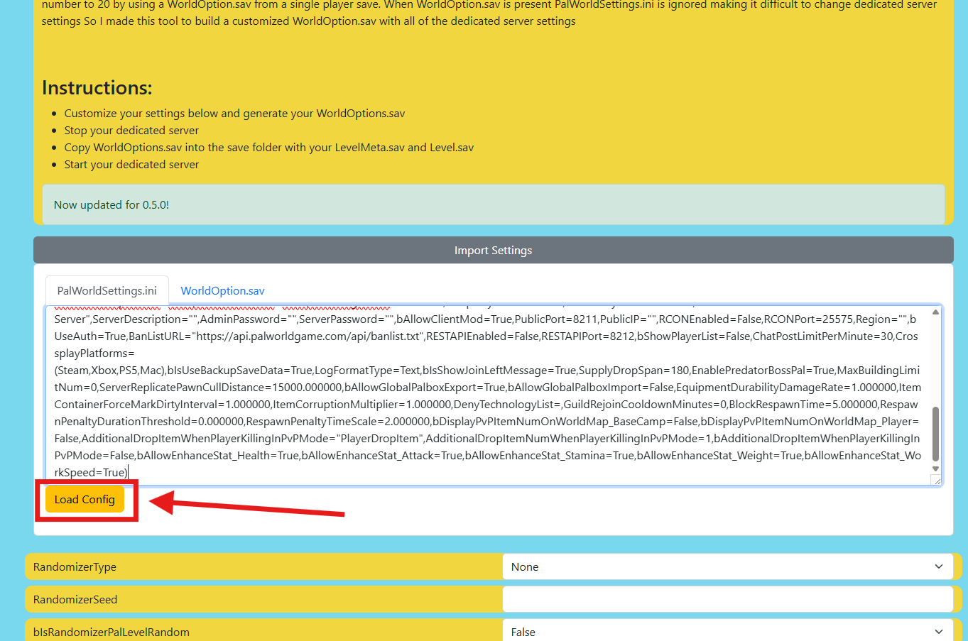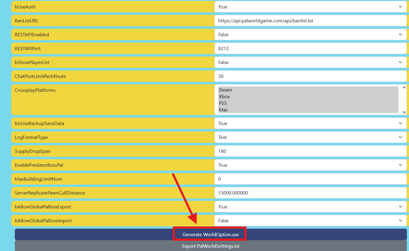 Open "PalWorldSettings.ini" and copy all its contents.