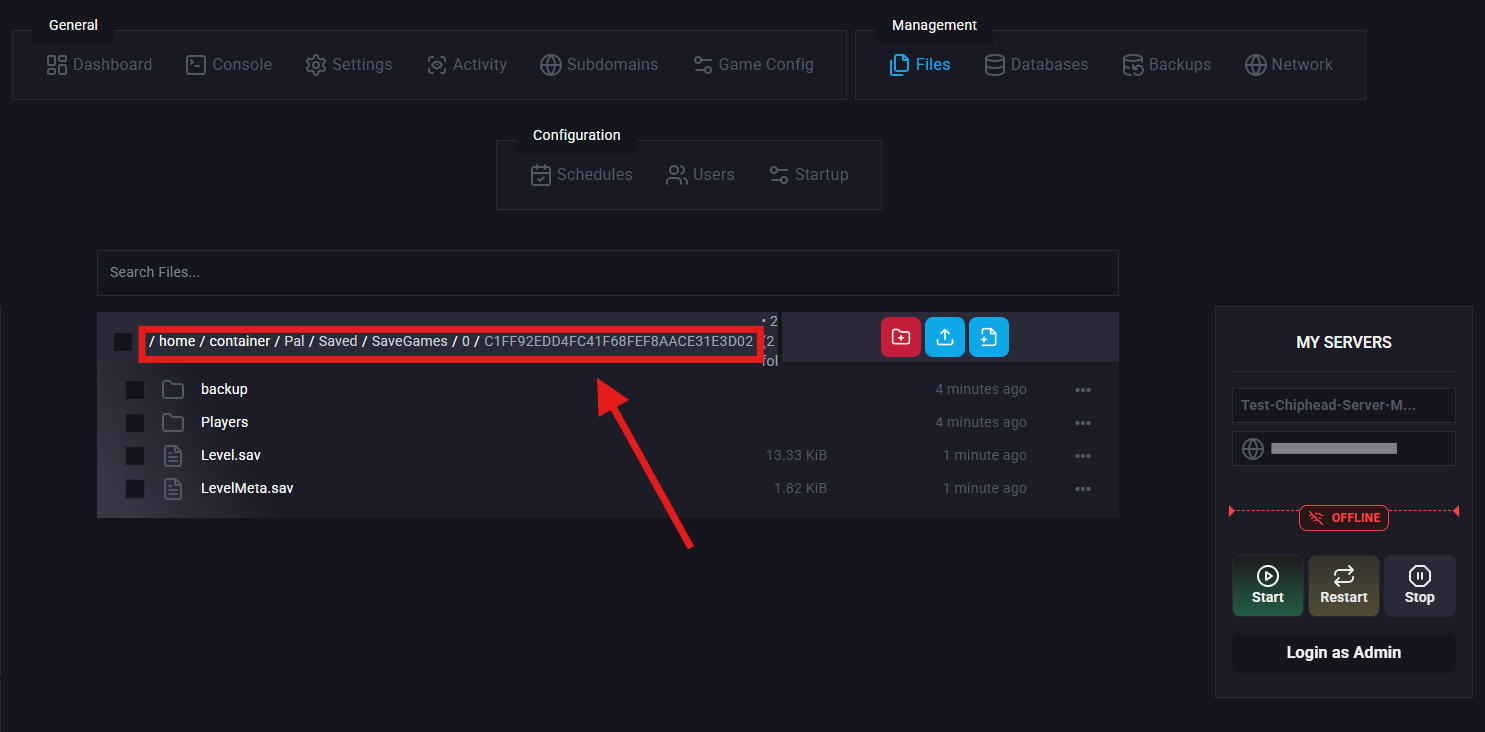Navigate to Pal/Saved/SaveGames/0/<YourSaveString>/