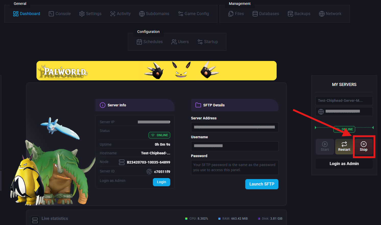 Navigate back to Dashboard and start your server.