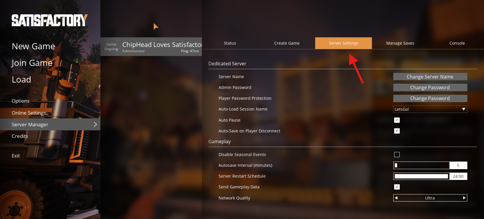 When someone connects to your Satisfactory server via IP, the server name is the first thing they’ll see - so it’s a great way to personalize your world! Luckily, you can change it easily from within the game.