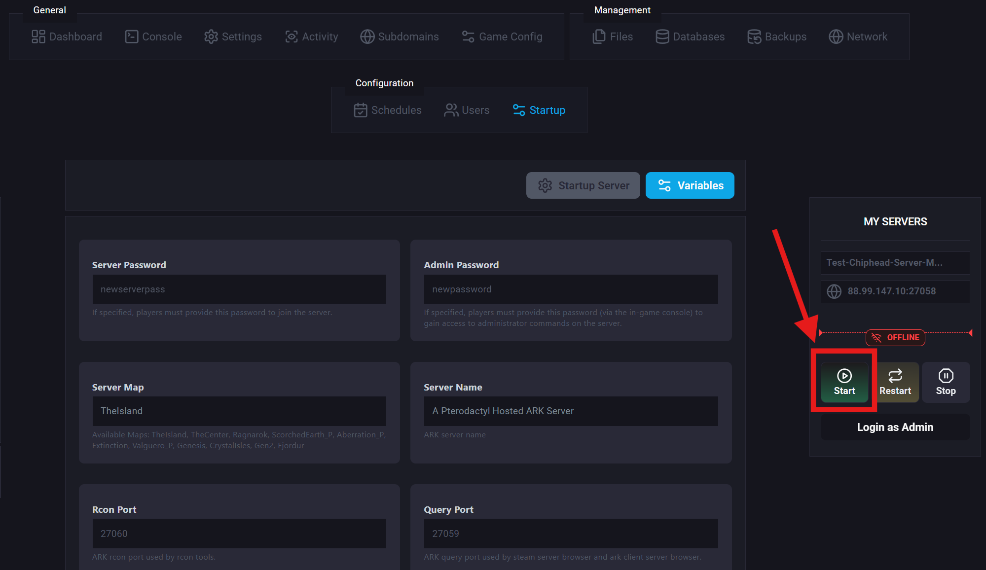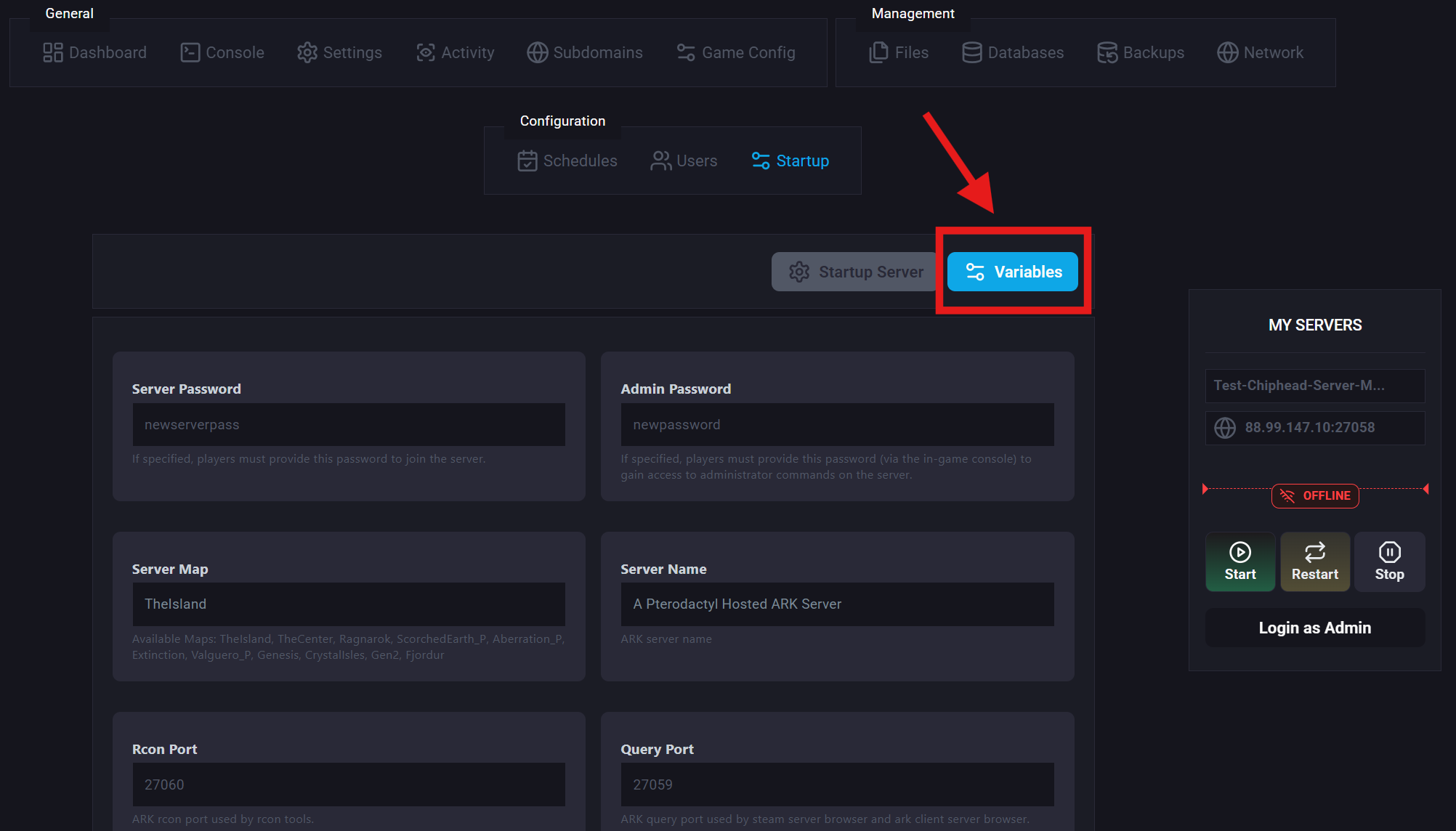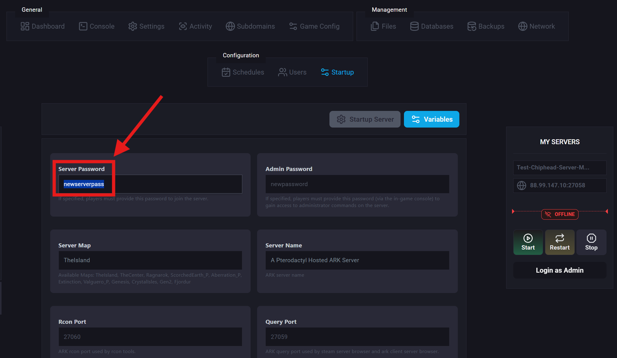 Adding a password to your ARK: Survival Evolved server ensures that only players who know the password can join. By default, all ChipHead servers are open to anyone, but setting a password allows you to keep your world private and secure.