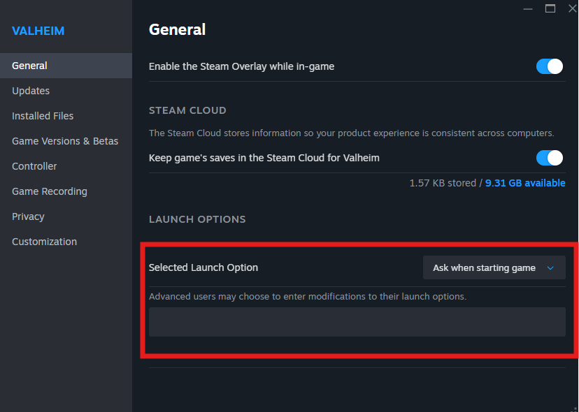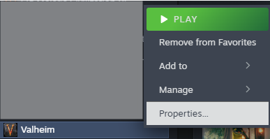 Right-click on Valheim and select Properties.