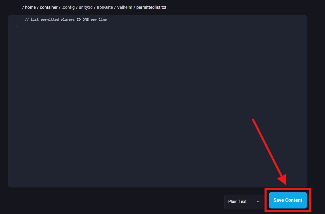 Add the SteamID64 of each player you want to allow on your server, entering one ID per line and click Save Content.