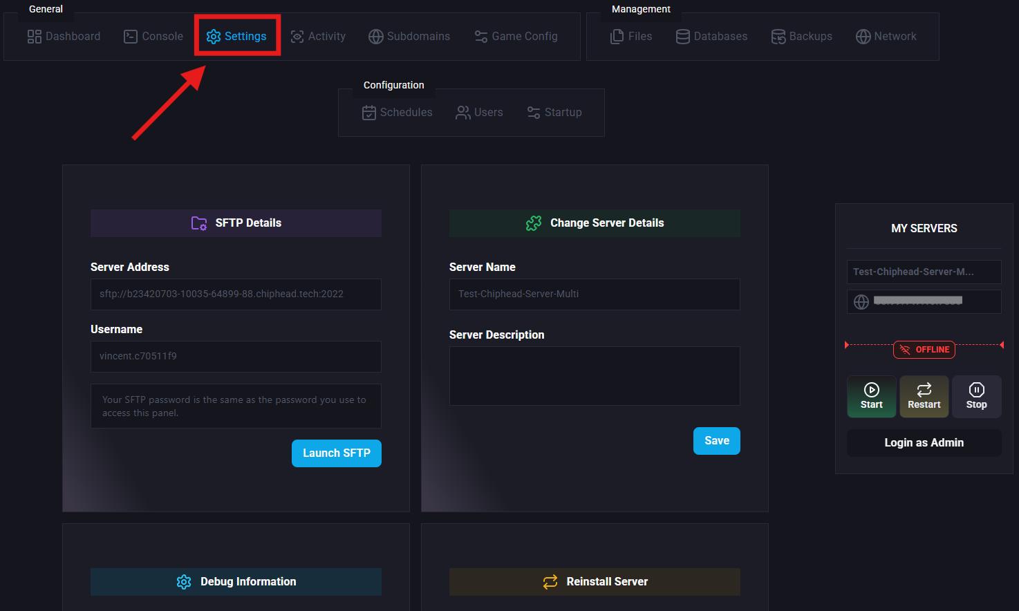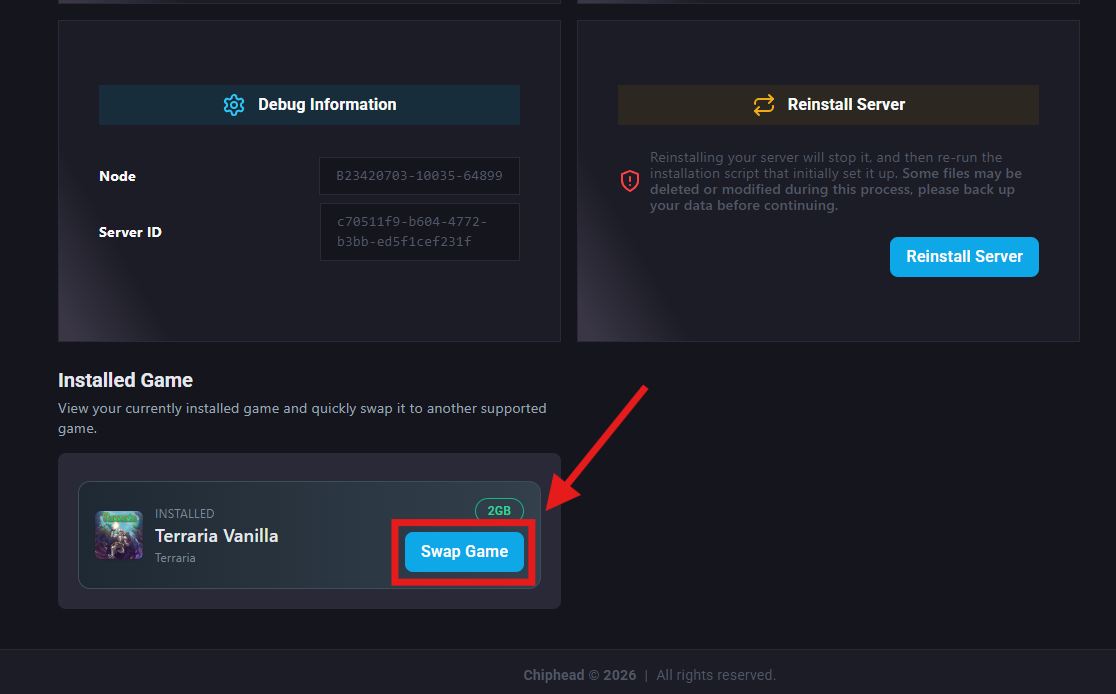 Scroll down and select “Reinstall Server”