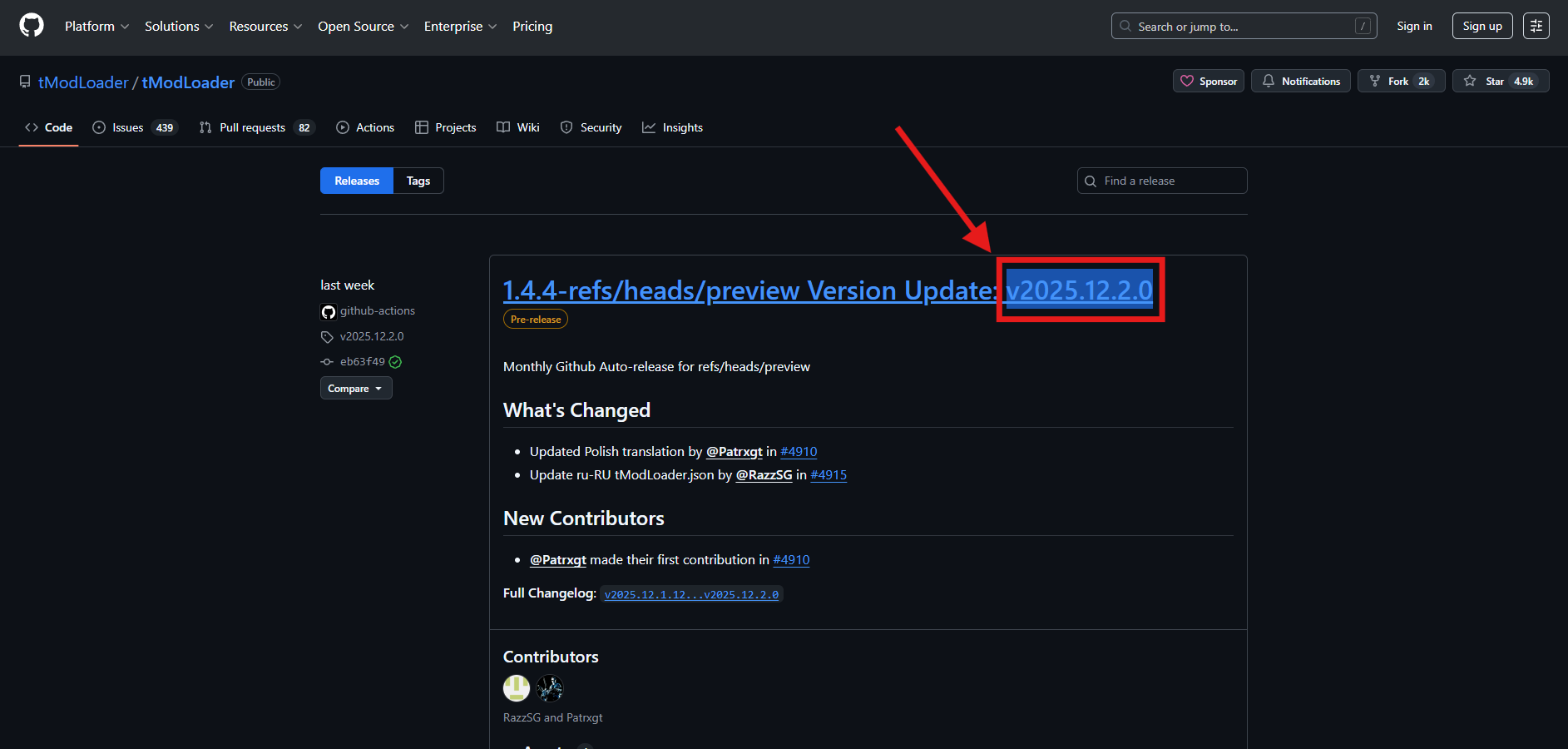 Navigate to tModloader’s github to choose the version that matches your Steam installation.