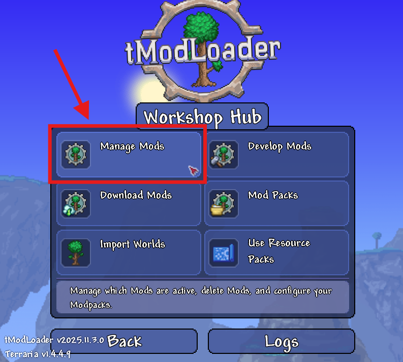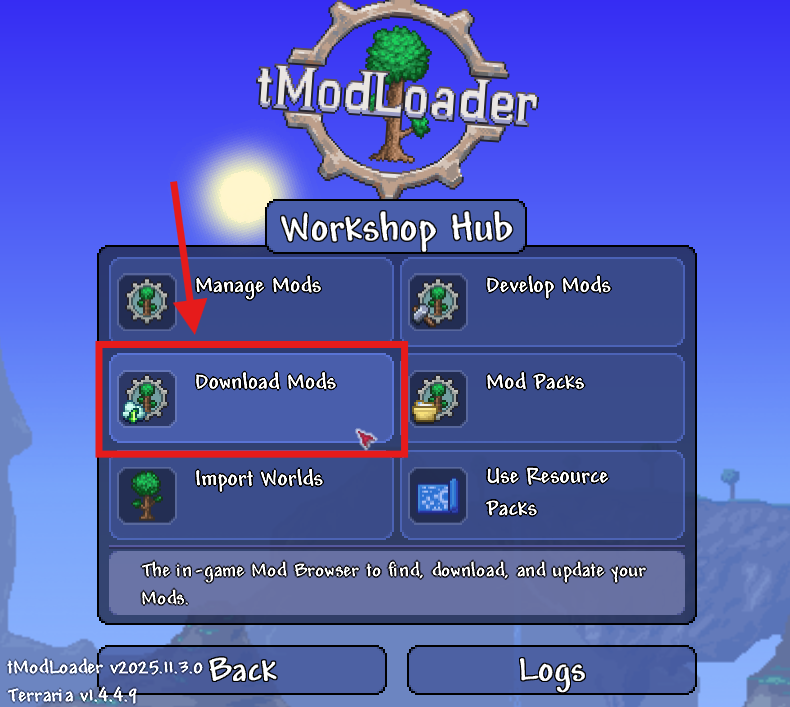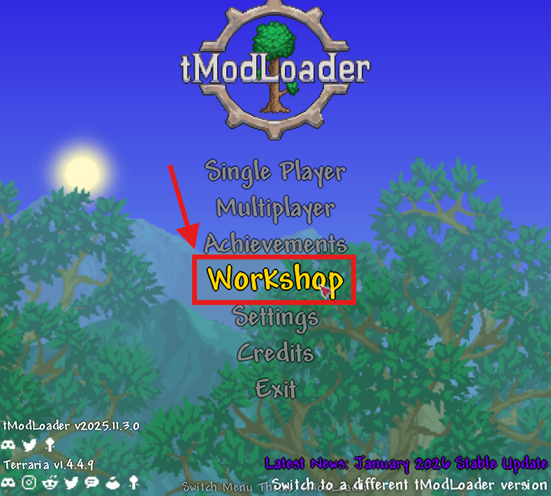 From the main menu in tModLoader, select Workshop.