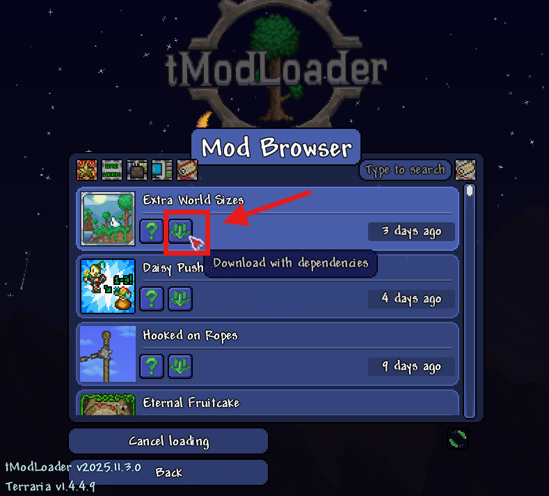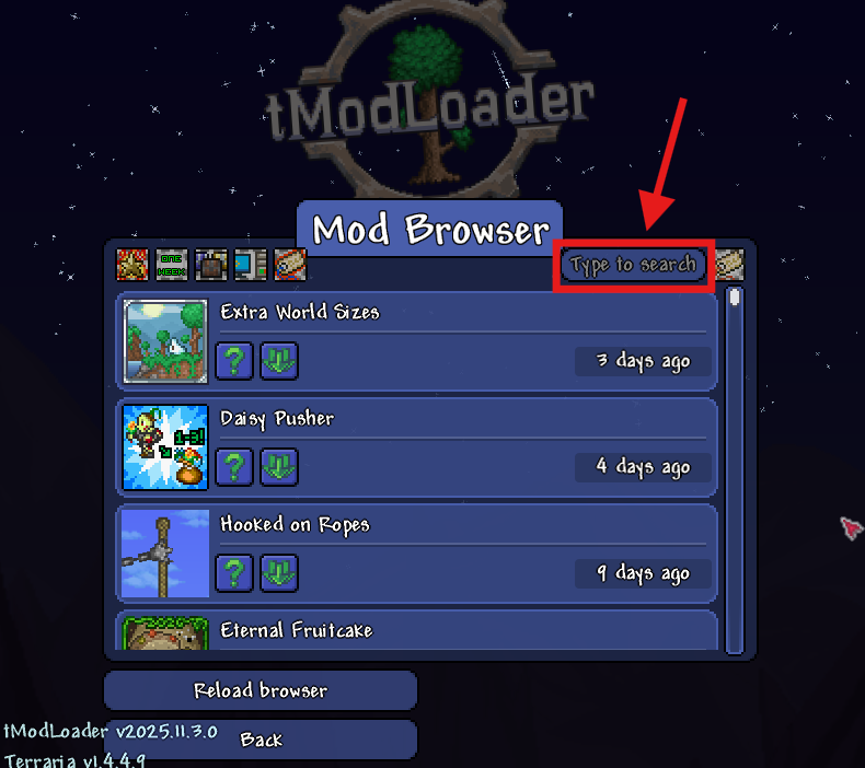 Search for “terraria” and select tModloader.