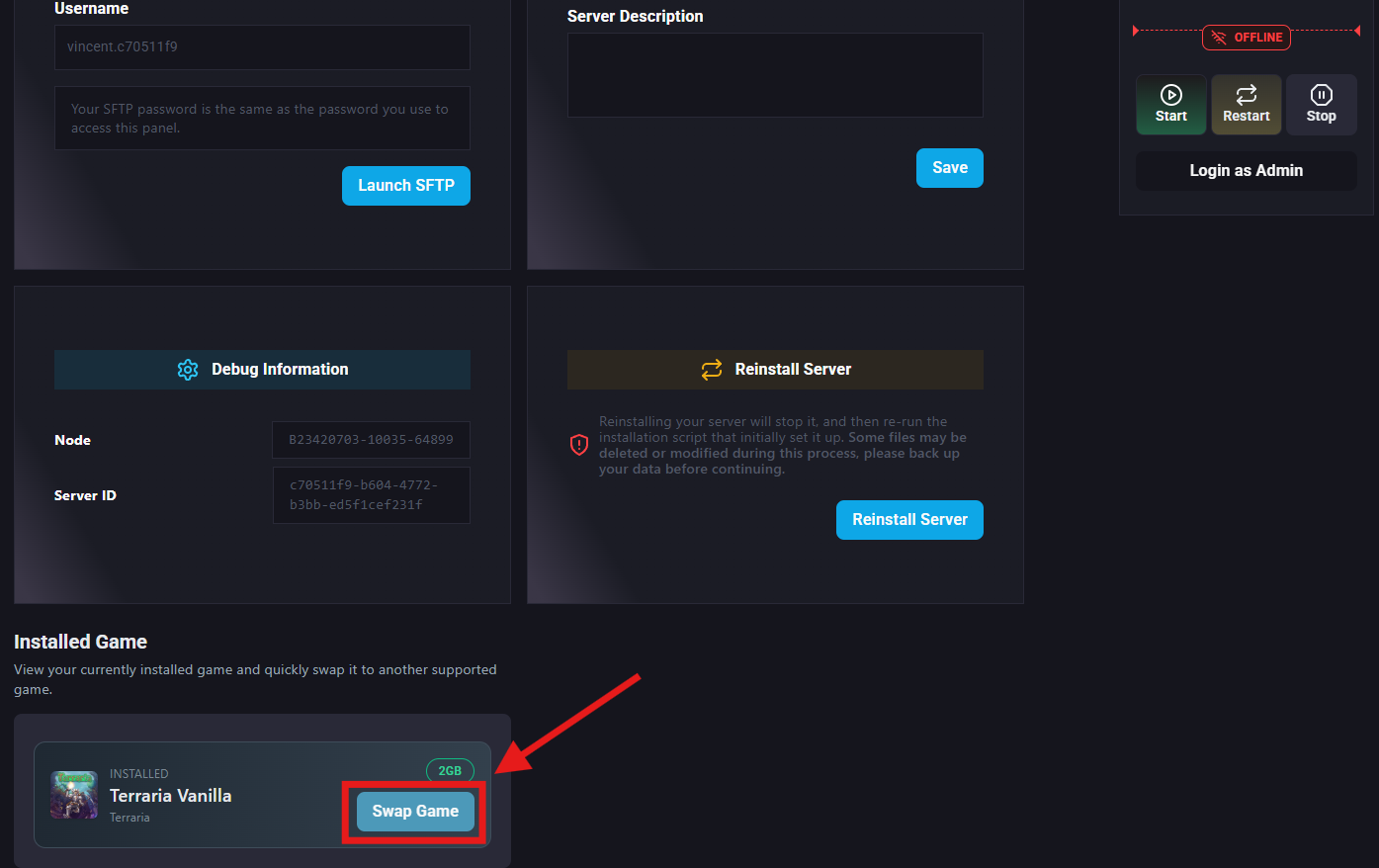 Scroll down to the Installed game and click Swap Game.