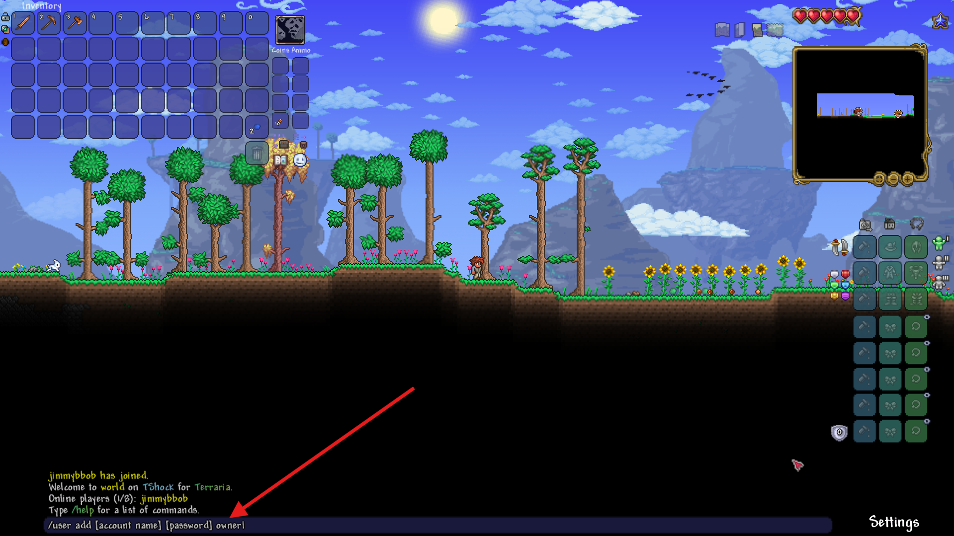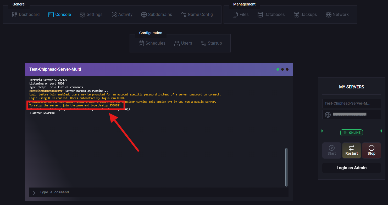 If successful, TShock will display confirmation text in your chat.