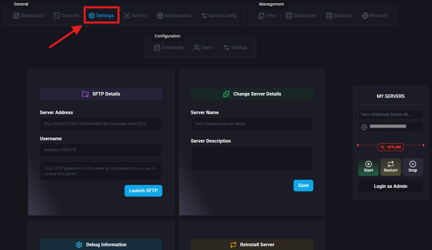 Log in to your Control Panel and stop the server.