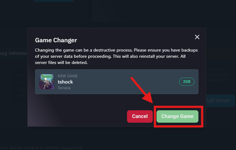 Click Change Game to confirm and begin installation.