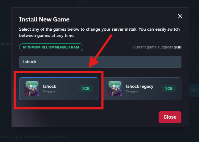Search for “tShock” and select it from the list.