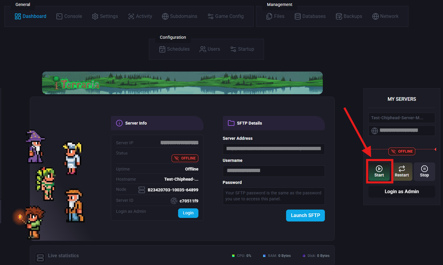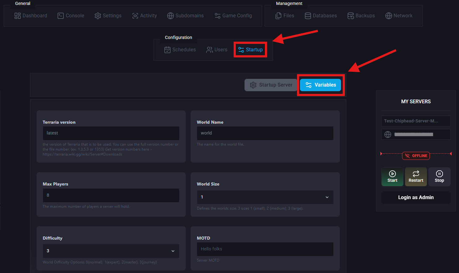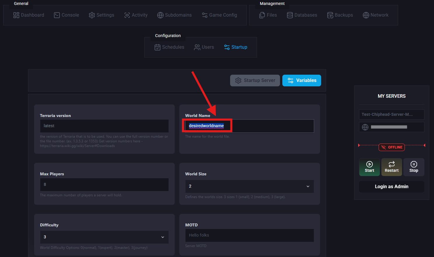 Sometimes, you or your players might decide it’s time for a fresh start on your Terraria server. Resetting your world will remove all current world progress and generate a new one. You can do this either by deleting your current world file or by changing your active world’s name.