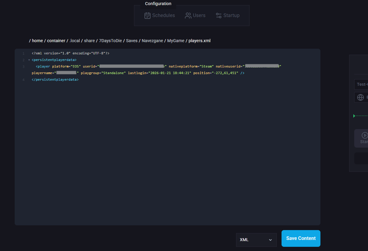 If the player isn’t currently online but has joined your server before, you can find their EOS ID in the players.xml file.
