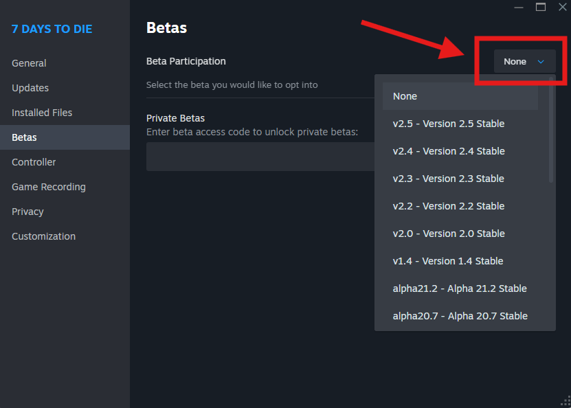To join your server, you’ll also need to switch your Steam client to the same experimental version: