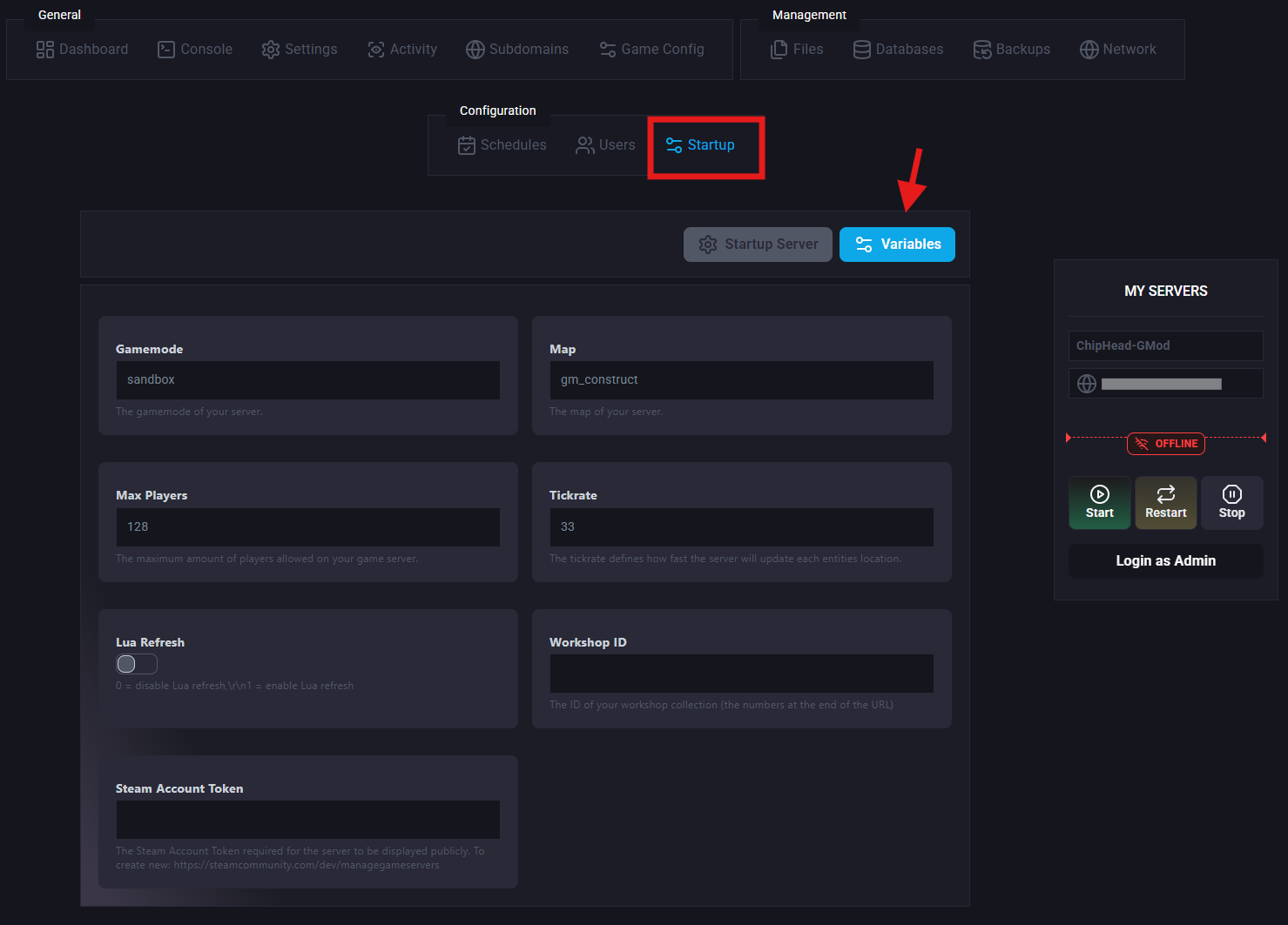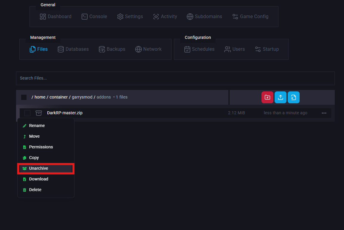 Follow these steps to install DarkRP using the ChipHead Panel: