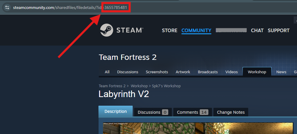 Copy the Workshop ID from the map’s URL. This is the series of numbers at the end of the address.