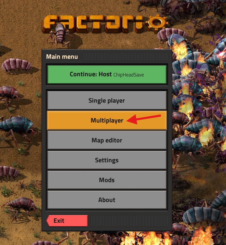 Launch Factorio and select Multiplayer from the main menu.