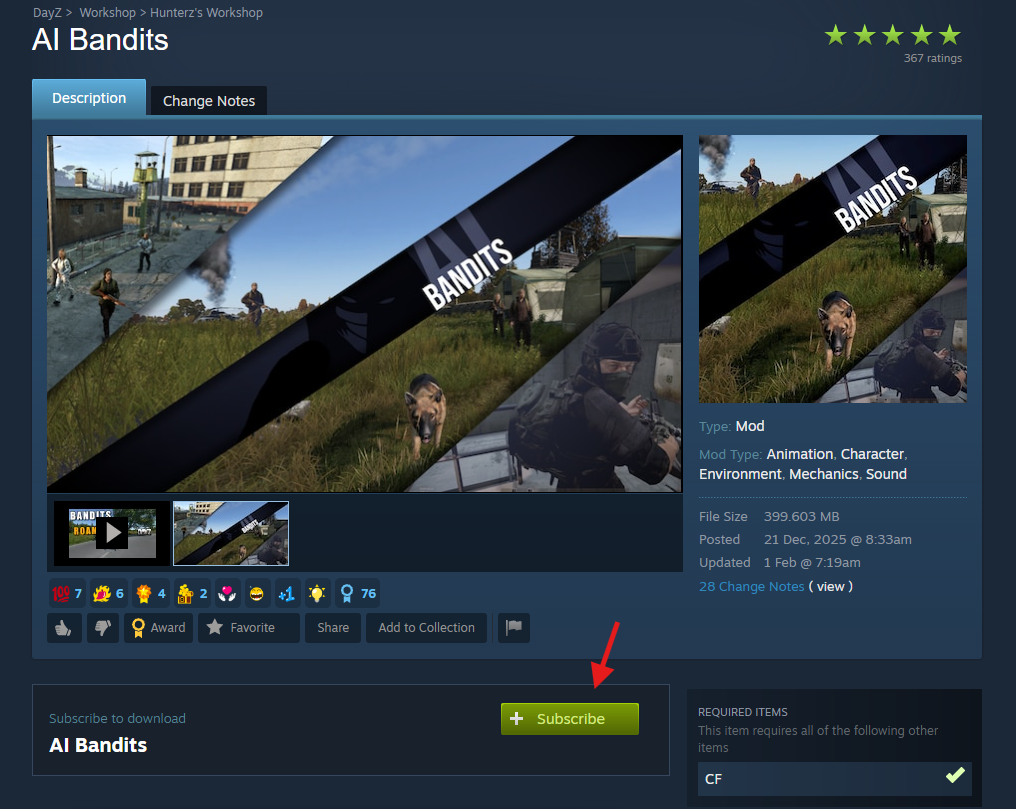 If you’re playing DayZ Stable, installing mods is quick and easy through the Steam Workshop.