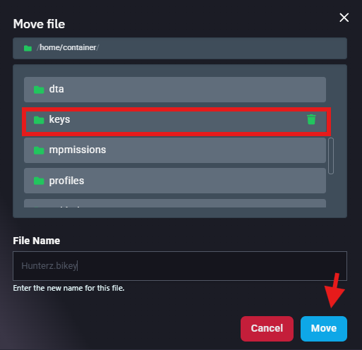 Move the .bikey file found inside to the keys folder in your server’s root directory