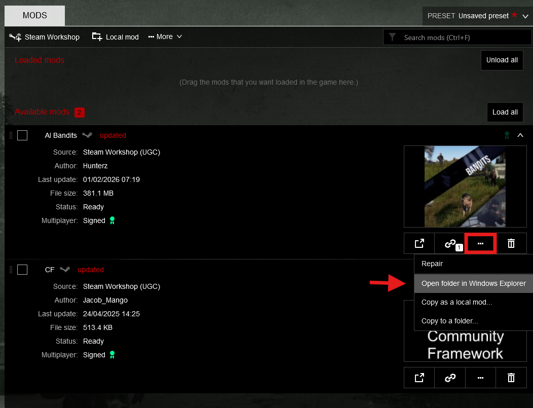 You can open Steam Workshop & “Subscribe” to a mod or upload a Local Mod