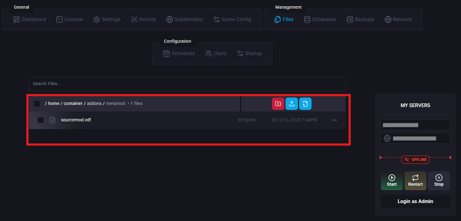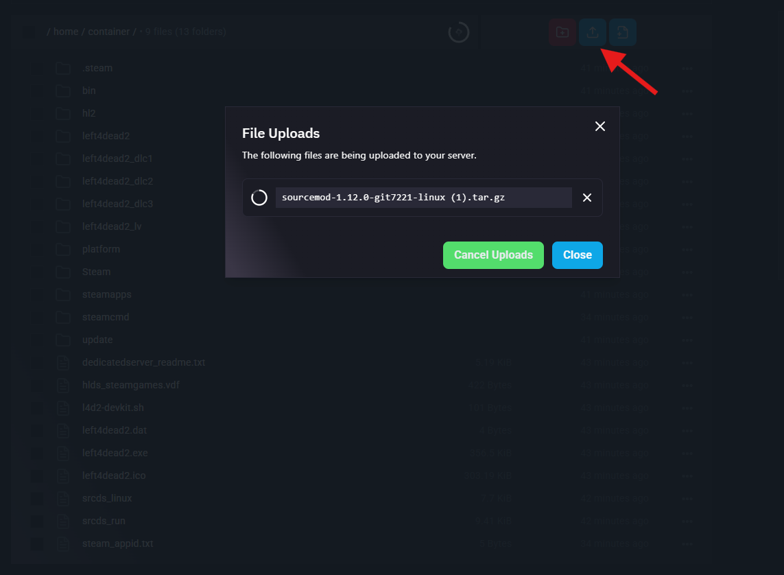 Upload your downloaded SourceMod folder to the panel.