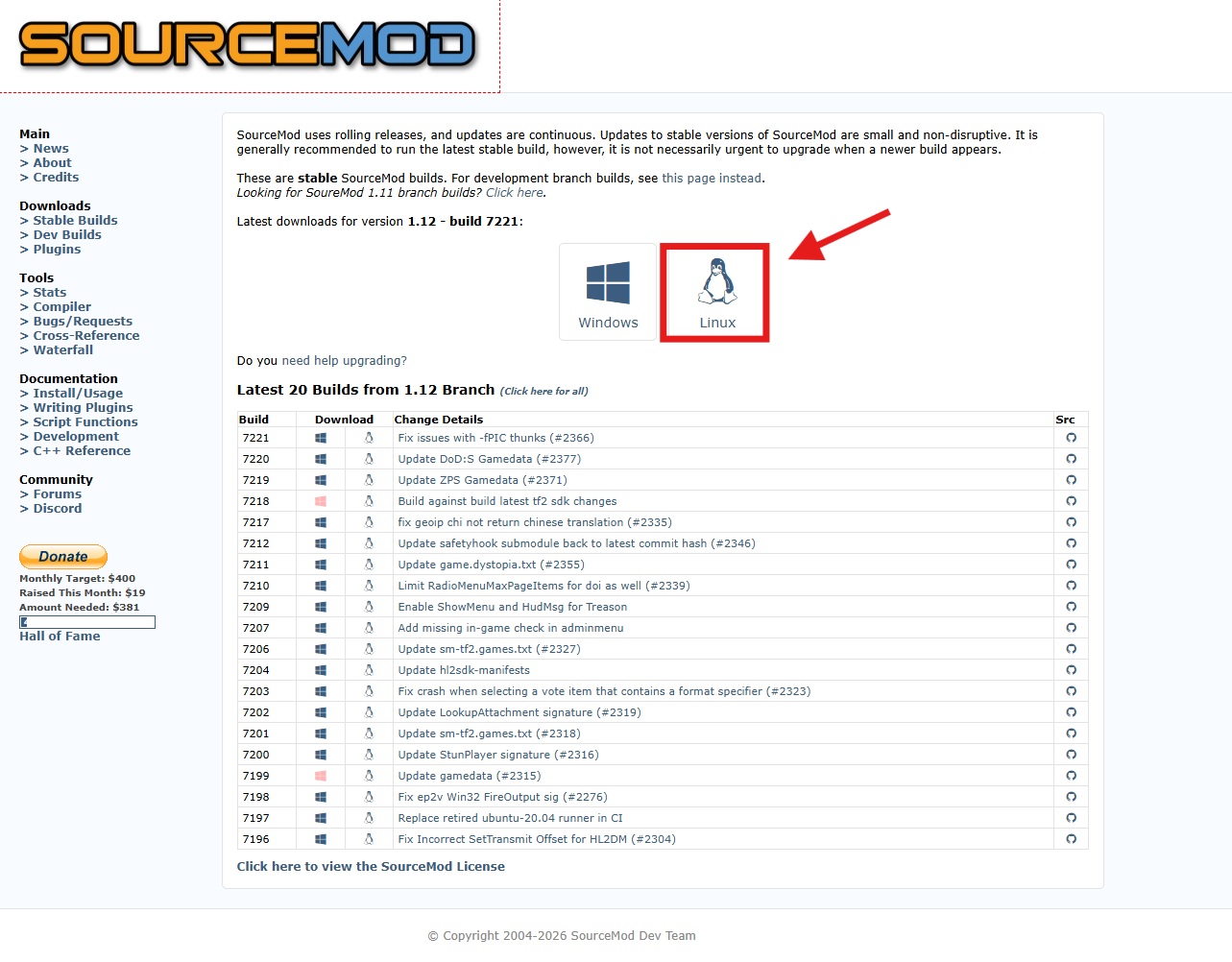 Visit the SourceMod website and download the latest Linux version.