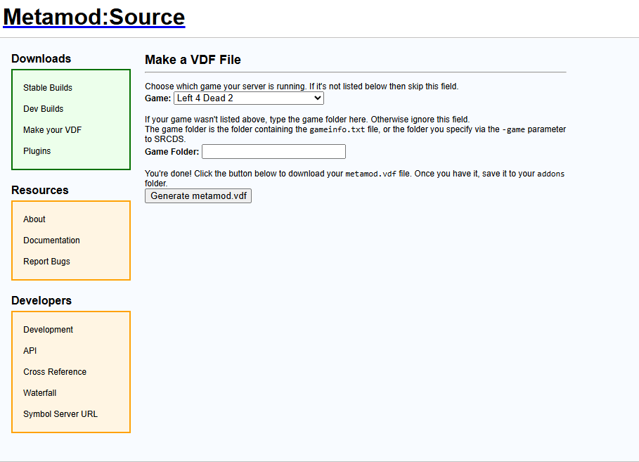 Generate a metamod.vdf file for Left 4 Dead 2.