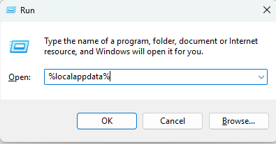 Type %localappdata% and press OK.