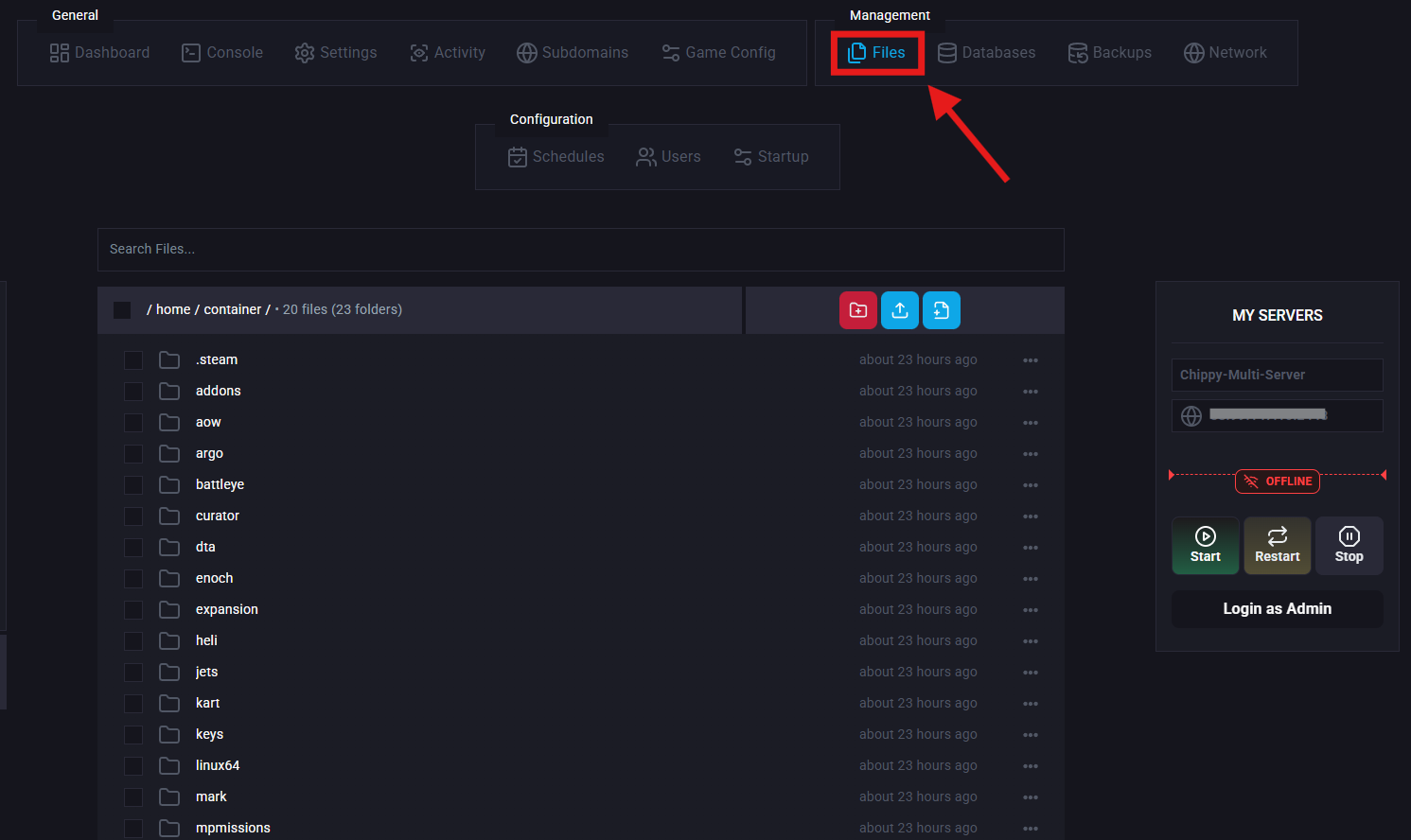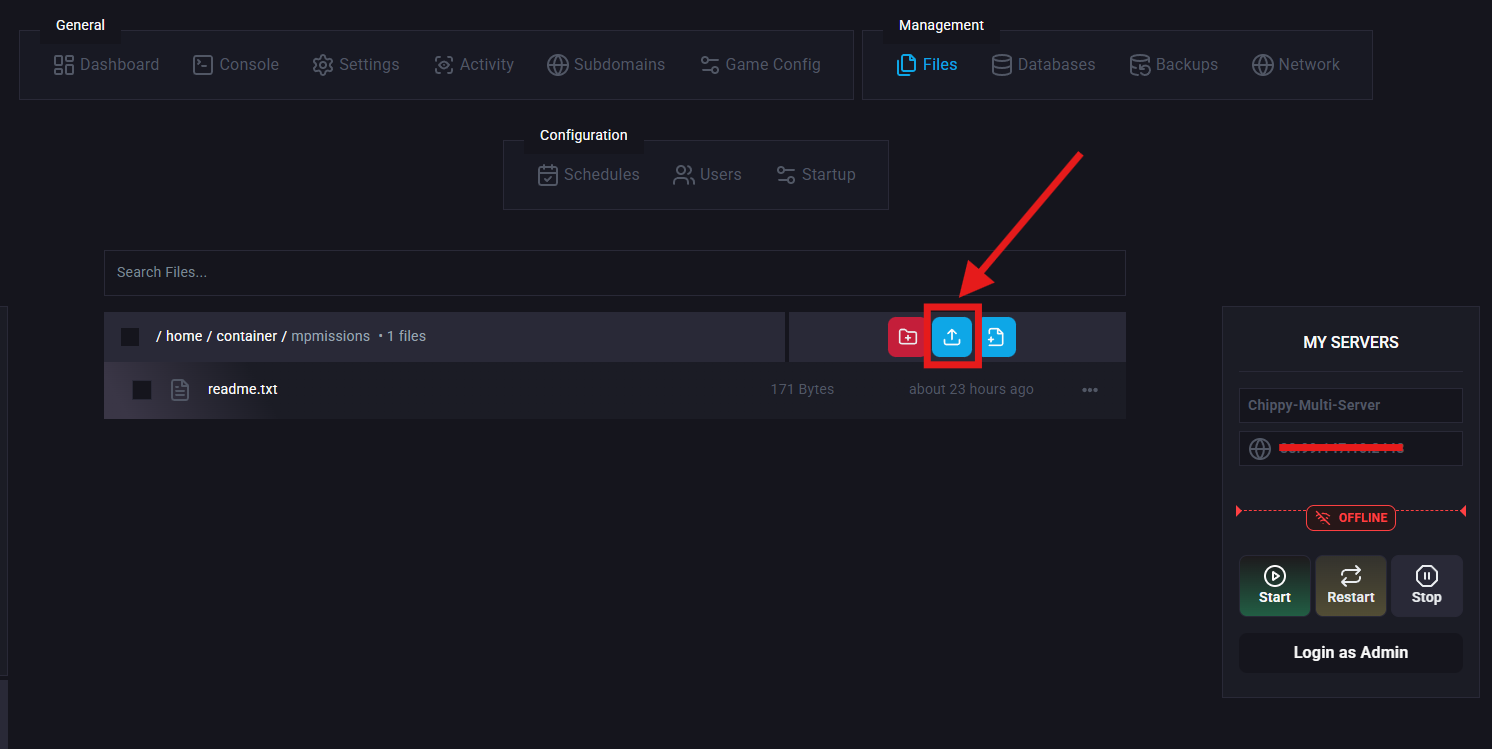 Before setting this up, you’ll first need to locate your mission files and upload them to your server.
