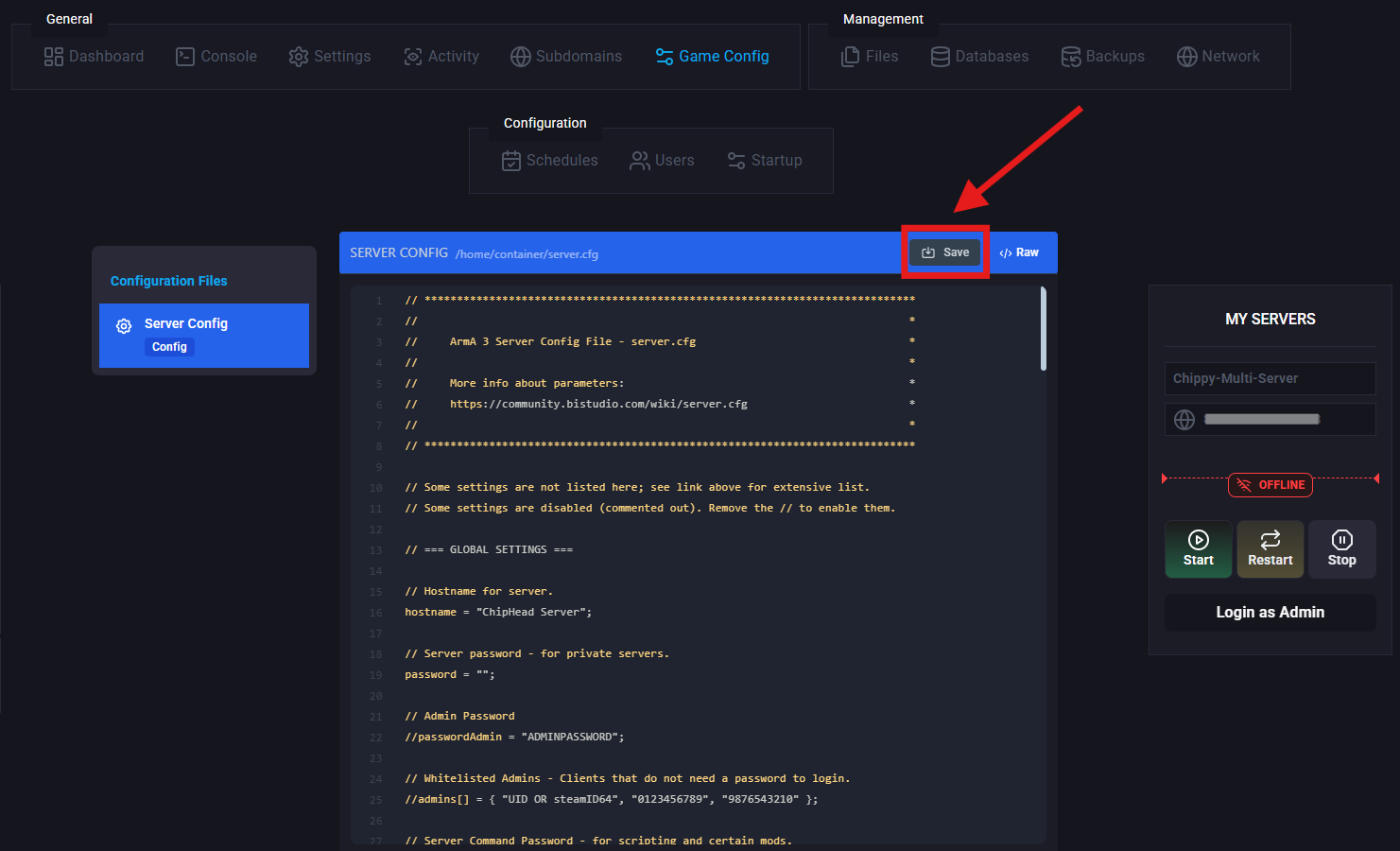 There are a variety of configurable settings available for your Arma 3 server, all located in the server.cfg file. This file allows you to adjust important options such as your server name, admin password, server password, and more.