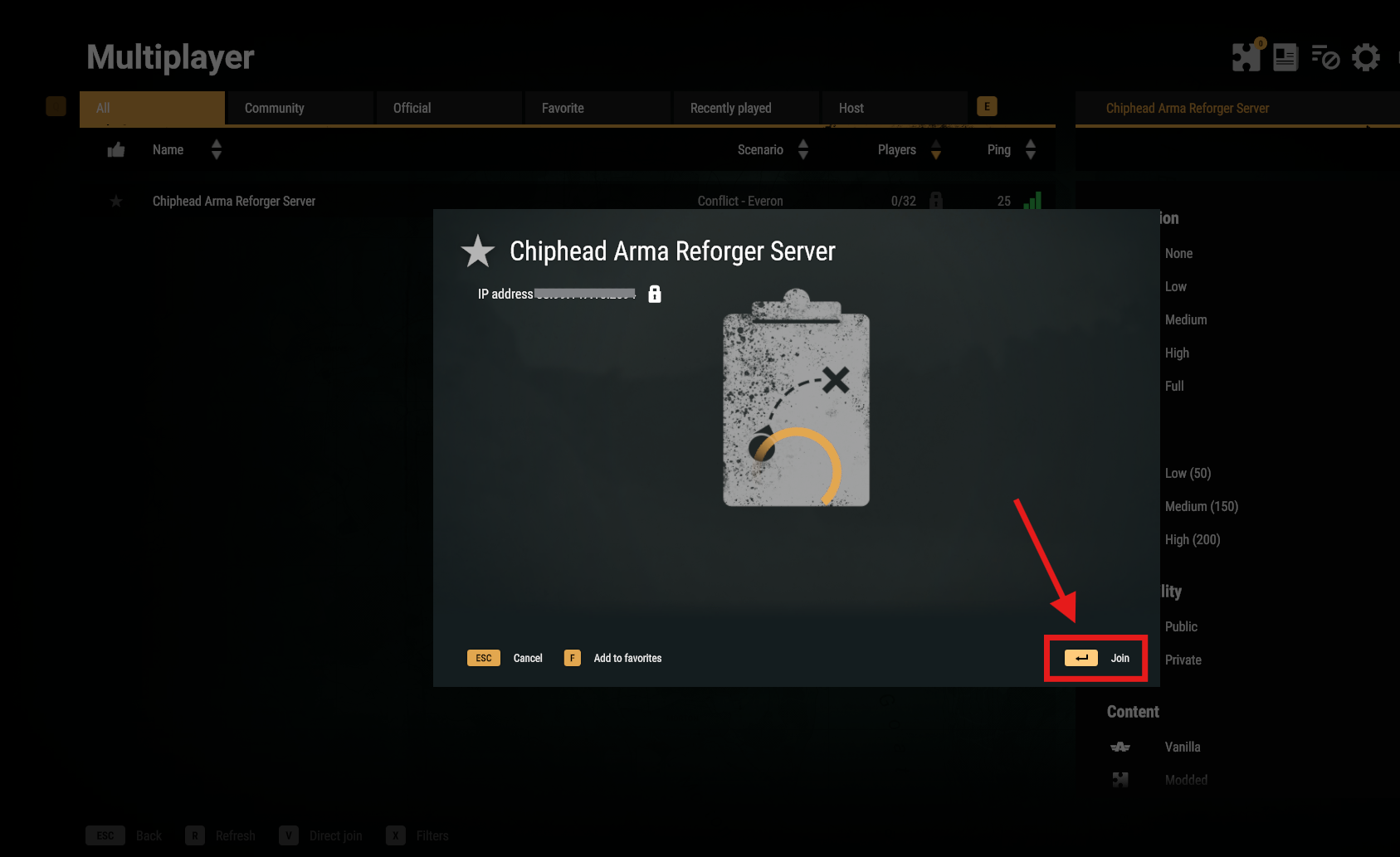 Once your Arma Reforger server is fully set up, you’re ready to join the action. Follow the steps below to connect using the in-game server browser.