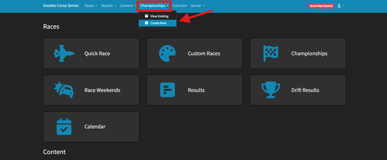 Under the Championships tab, click Create New.