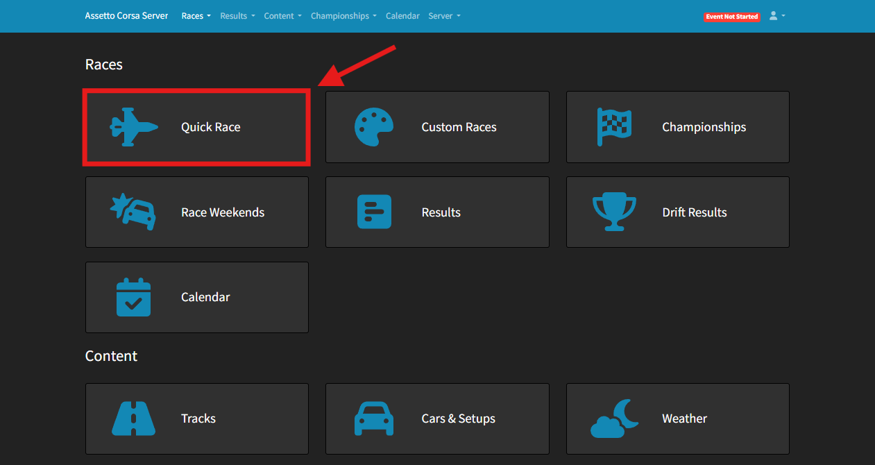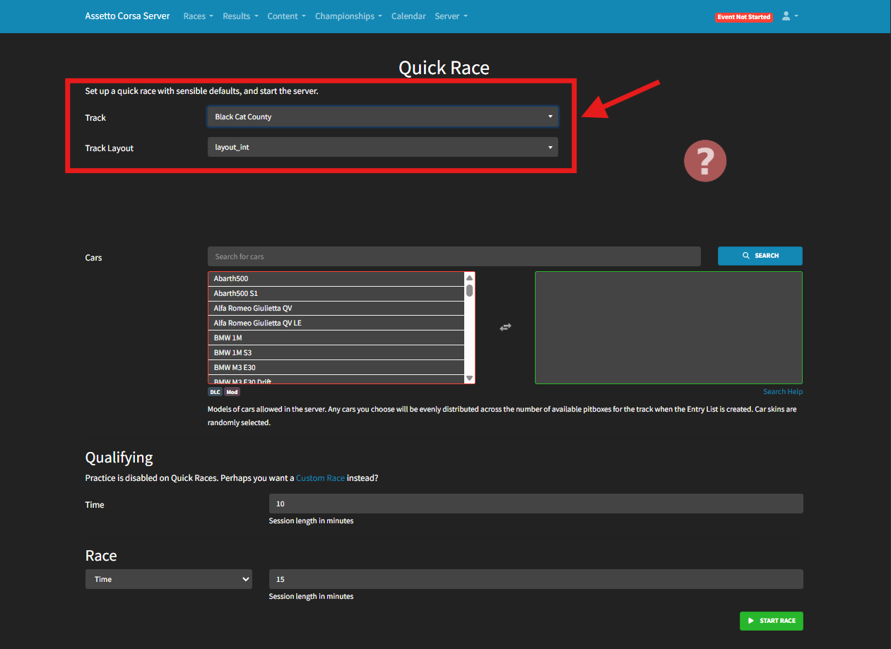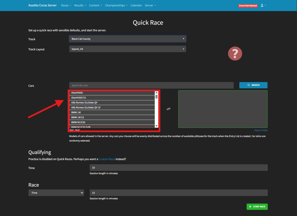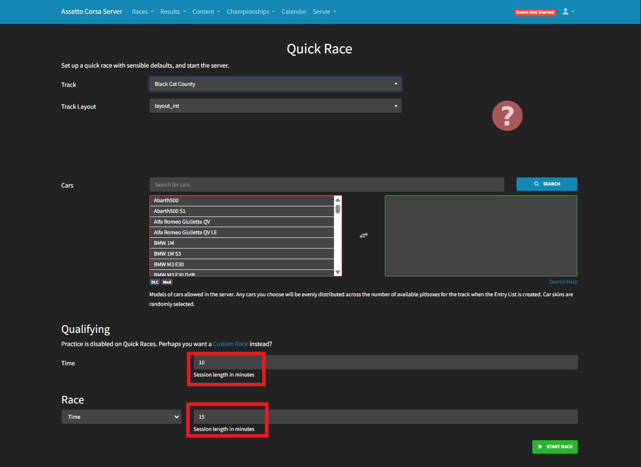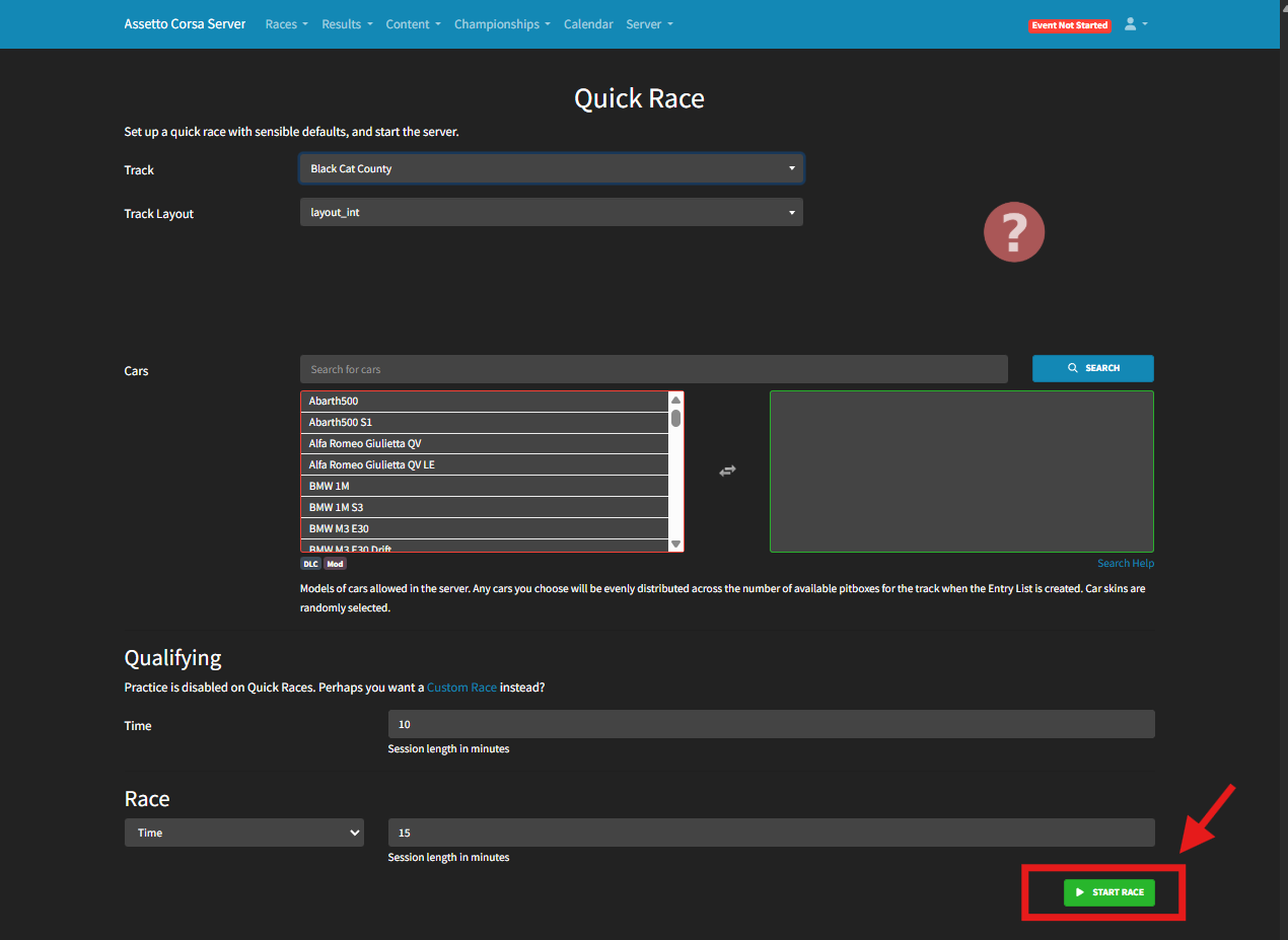 Assetto Corsa servers include a powerful and user-friendly server manager with a built-in web panel. This tool makes it easy to start races remotely, manage sessions, and switch between cars or tracks quickly. One of the simplest race types to set up is a Quick Race, which skips the practice session and jumps straight into qualifying and racing. Quick races can be either time-based or lap-based, providing flexibility for different play styles and event types.