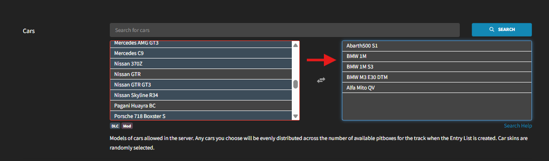 From the Cars menu, click any car you want to make available for the race.