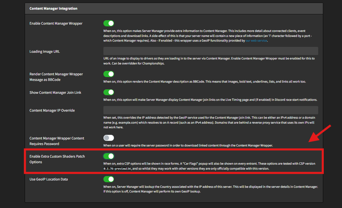 Switch “Enable Extra Custom Shaders patch Options” to enable it