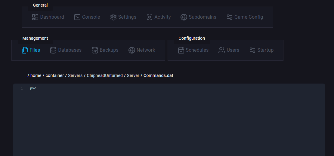 Go to the Files tab & Navigate to the following directory: /home/container/Servers/Default/Server