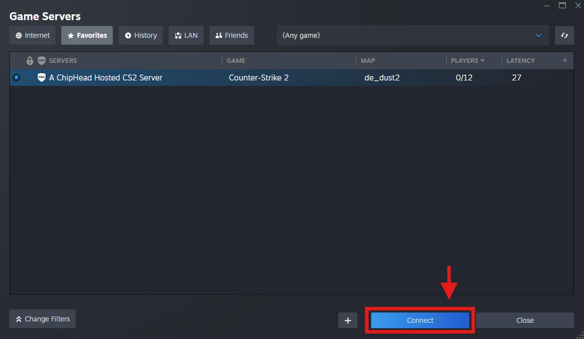 The easiest and most reliable way to join your Counter-Strike 2 server is by adding it to your Steam favourites list. You can also connect directly using the in-game developer console if needed.