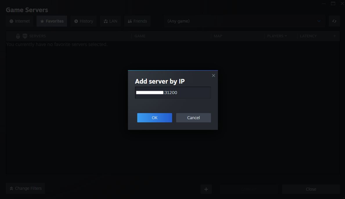 To add your server to your favourites, you’ll need its IP address and port number.