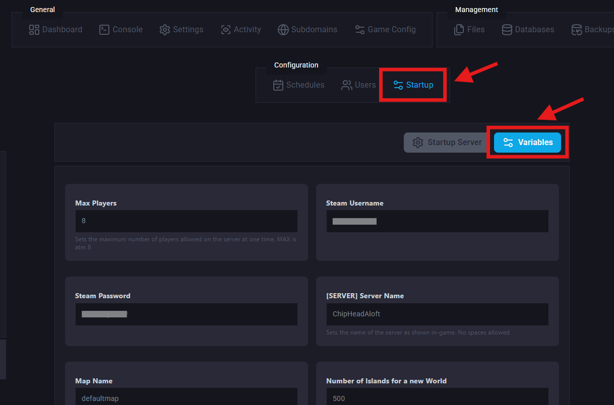 Go to Startup > Variables.