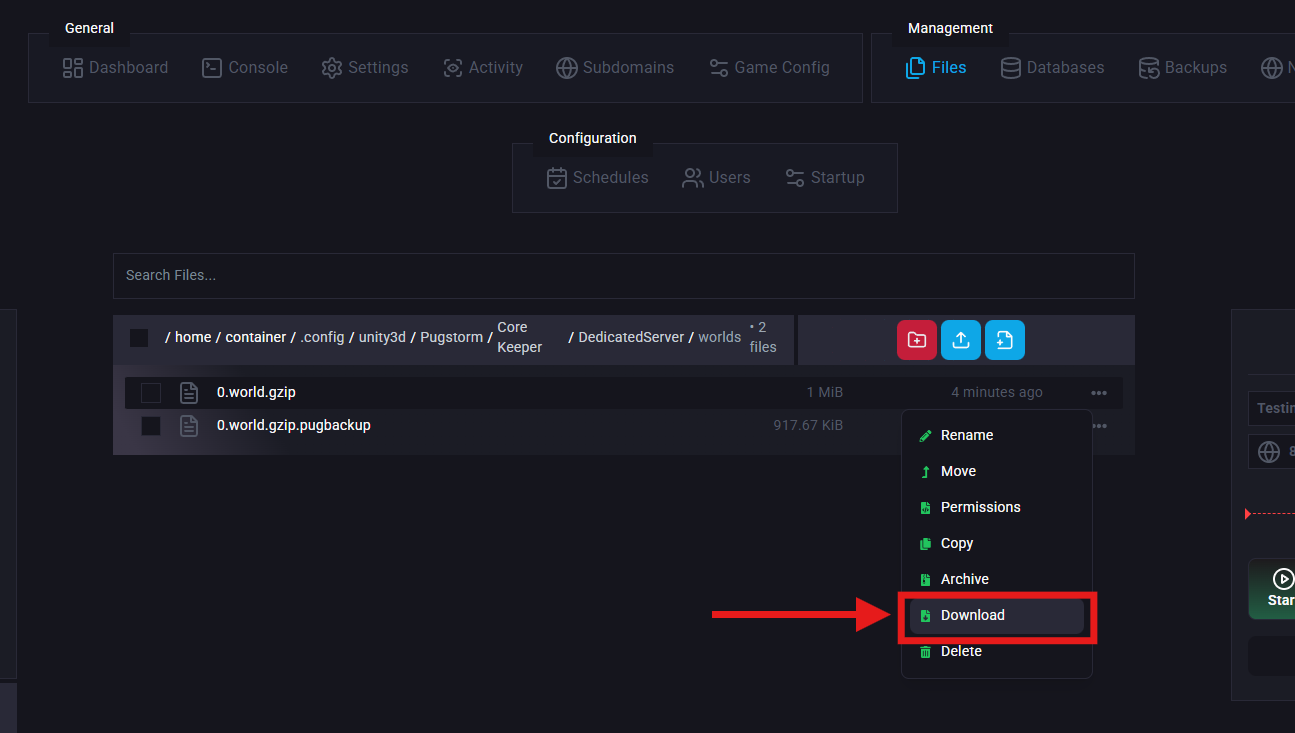 If you want to play your Core Keeper world in singleplayer or keep a local backup for safekeeping, you can easily download it from your server.