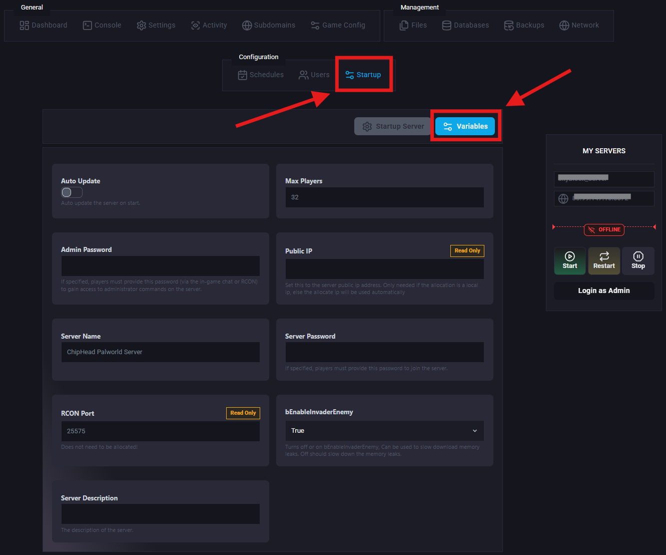 Navigate to Startup > Variables.