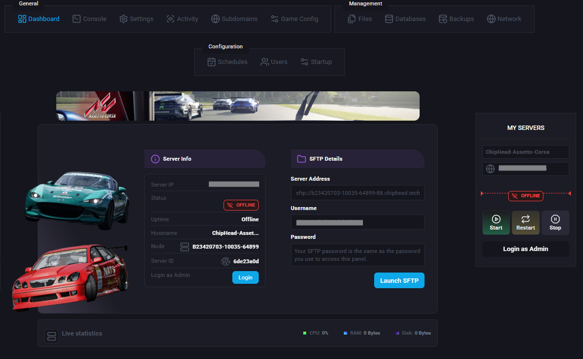 Login to your ChipHead Assetto Corsa server