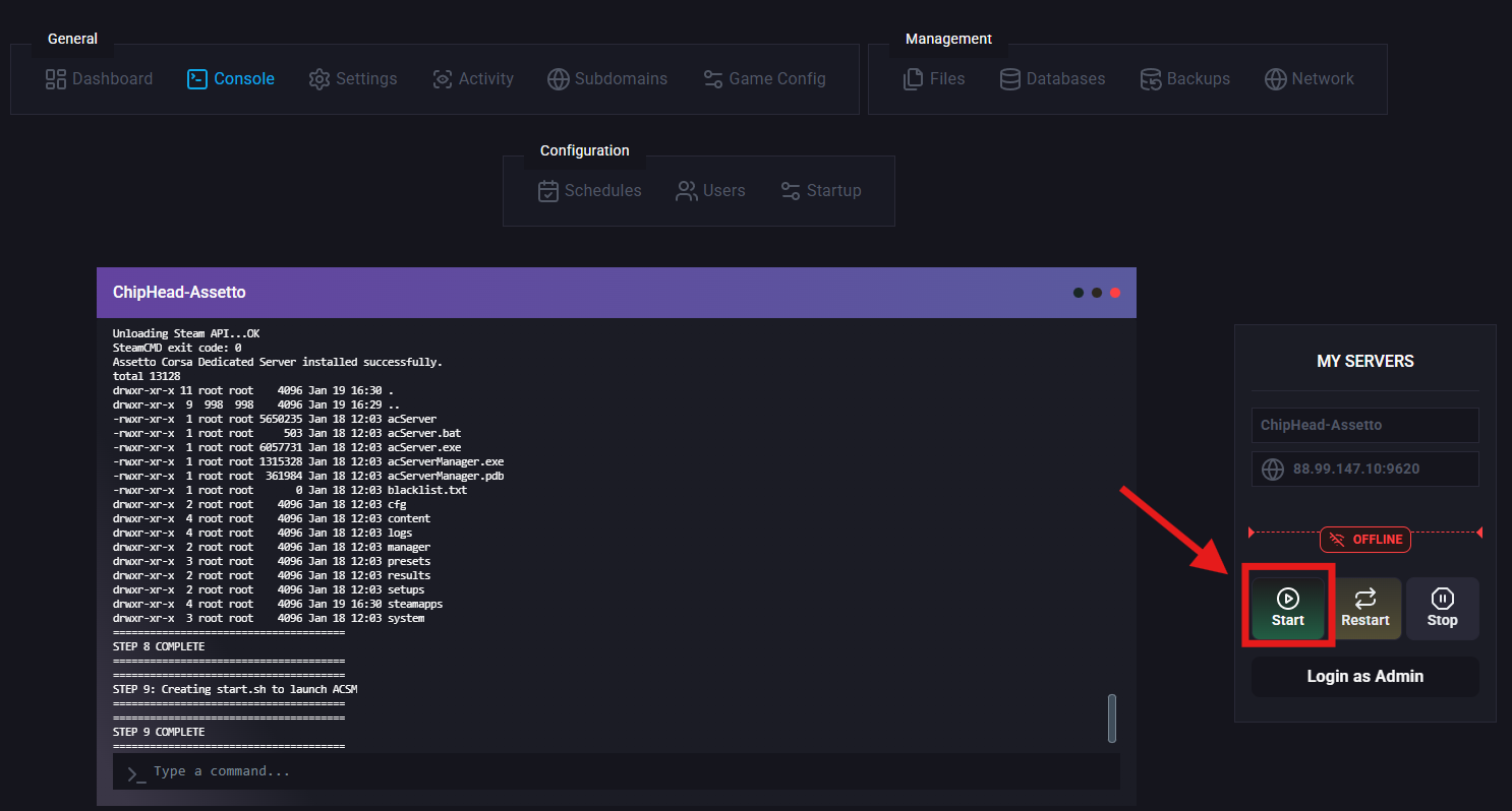 This guide will show you how to configure your freshly installed ChipHead Assetto Corsa server for newly purchased OR game swapped servers.
