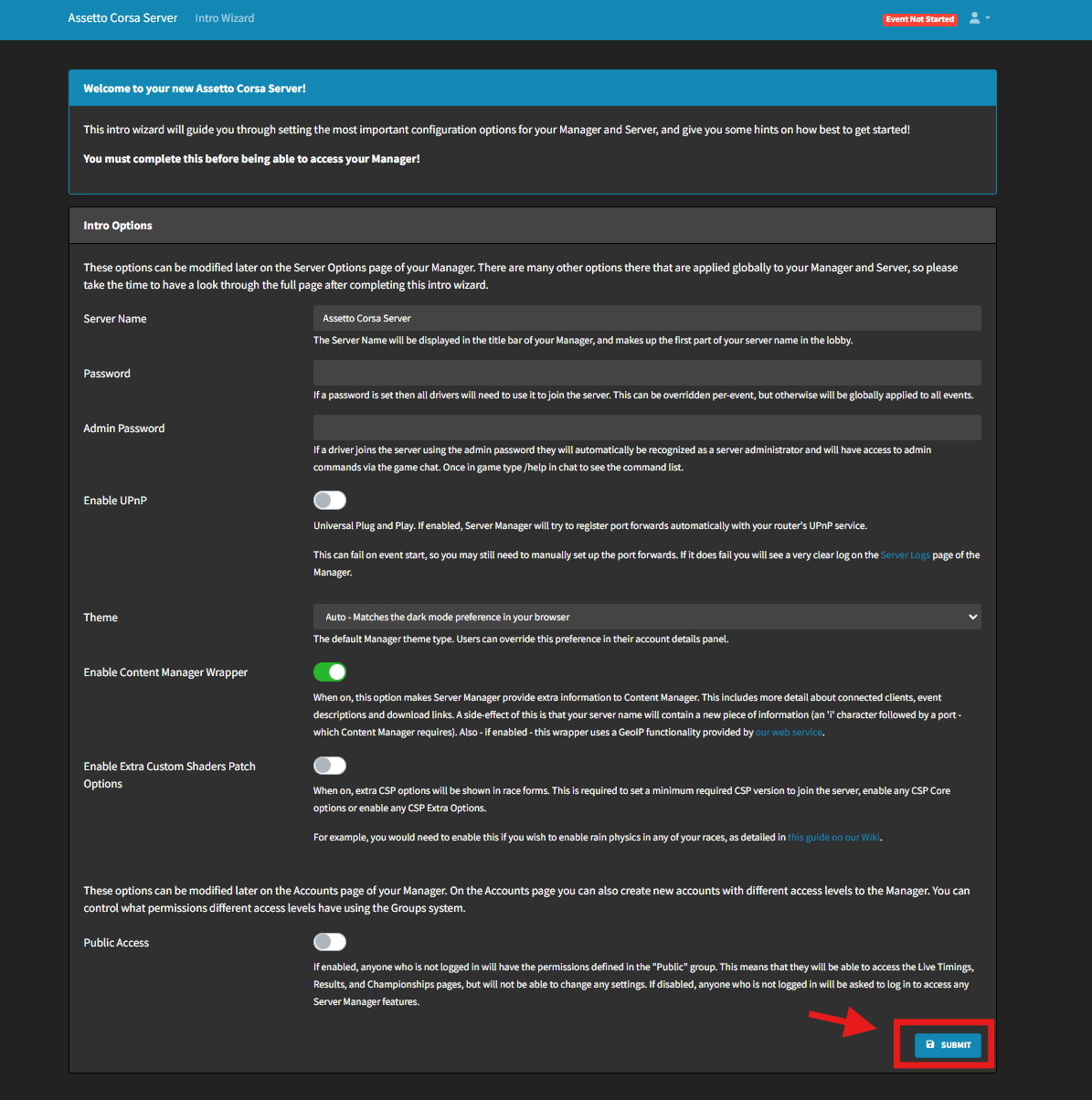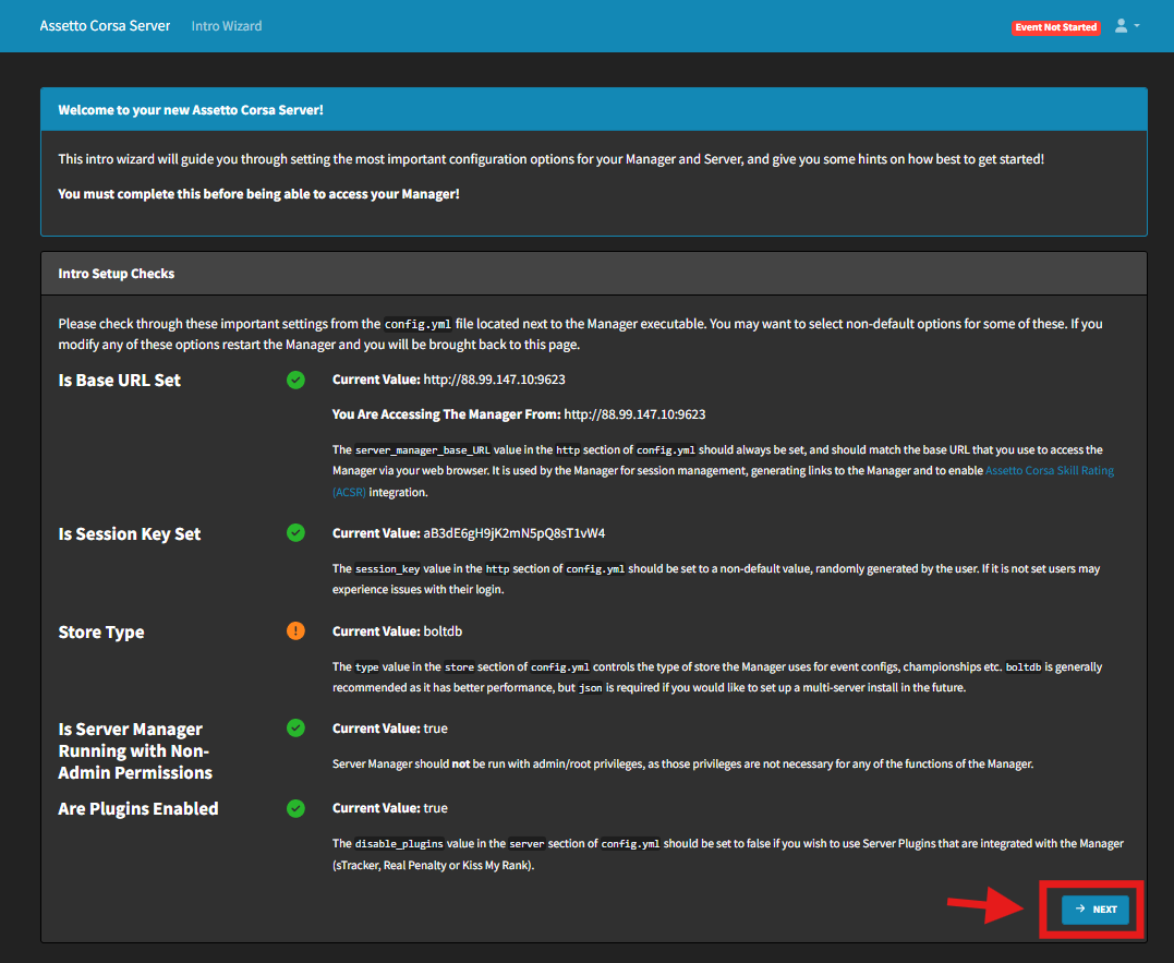 You can now connect to Assetto Corsa Server Manager using your Public URL in step 6.