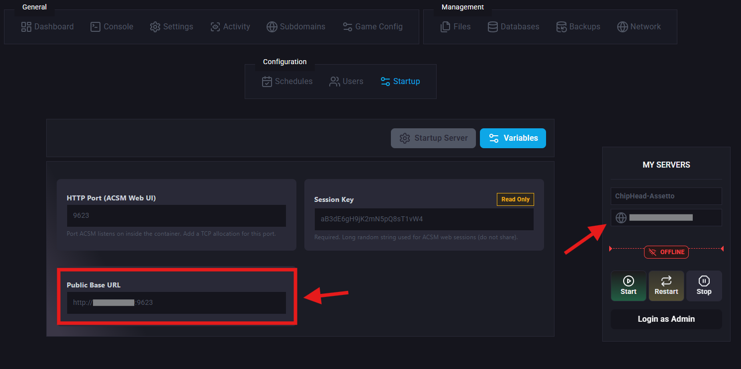 Copy your Server IP from “My Servers” and paste into Public Base URL and change the port number to your Secondary Port.